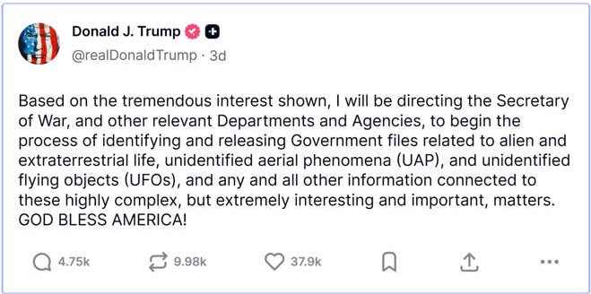 Trump Orders Federal Release of UFO and Possible Alien-Life Files